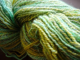340 lovely yards of handspun fingering weight. Blue Faced Leceister. It is mine. Don't even think about it. But for the yarnies out there here is a closeup. You can pretend you are squeezing it. I promise it's luscious.
